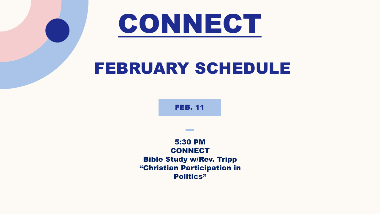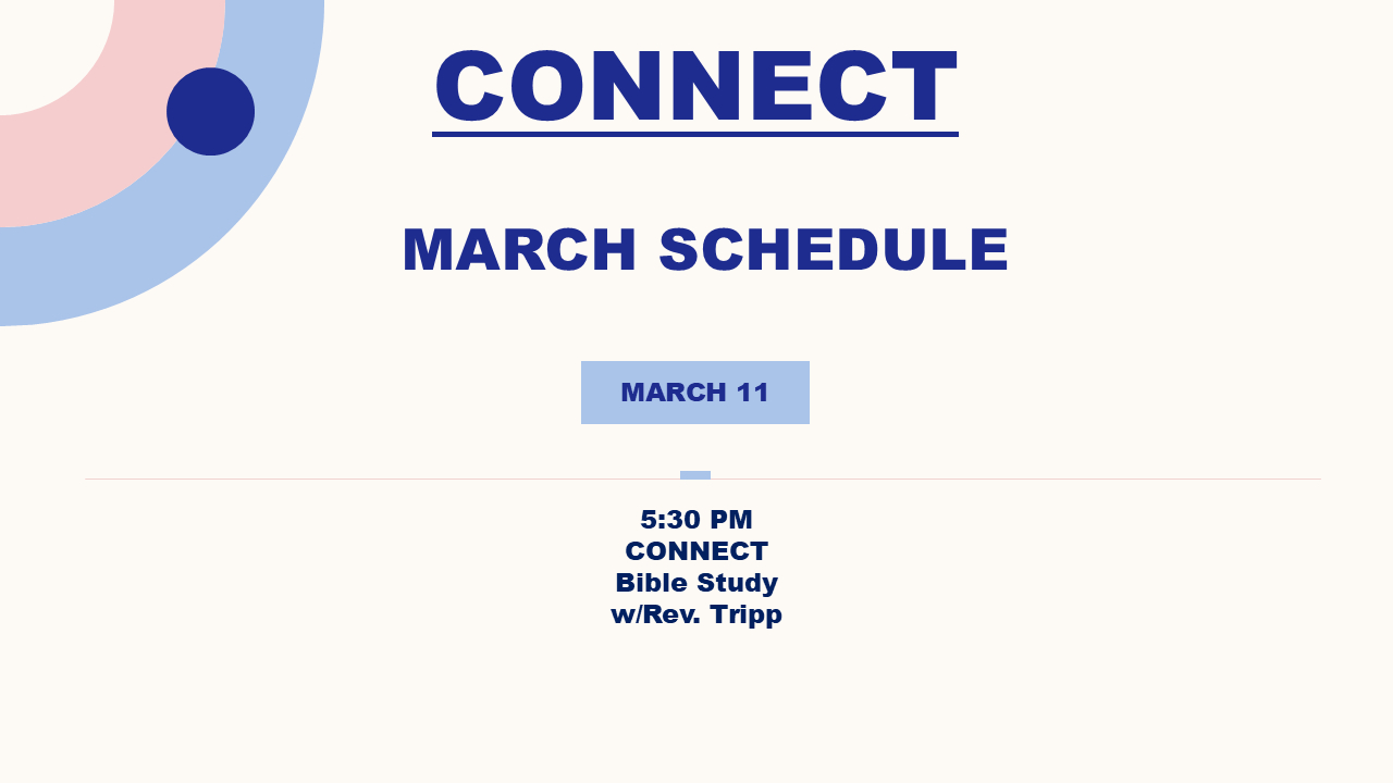 Sunday Worship – 10:00 AM In person & online, Sunday School 8:45 AM | Wednesday CONNECT – 5:30 PM